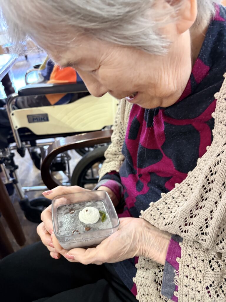 こんにちは!! 癒しの里南千住でございます✨ 今回は・・・実習生が考えたおやつを提供していました!! 黒ゴマプリンに熊さんの顔を作っていましたね🐻皆様も喜んでいただいておりました!おやつ作り1つでも手をぬかず・・・少しでも生活が彩るような工夫を毎日考えています!