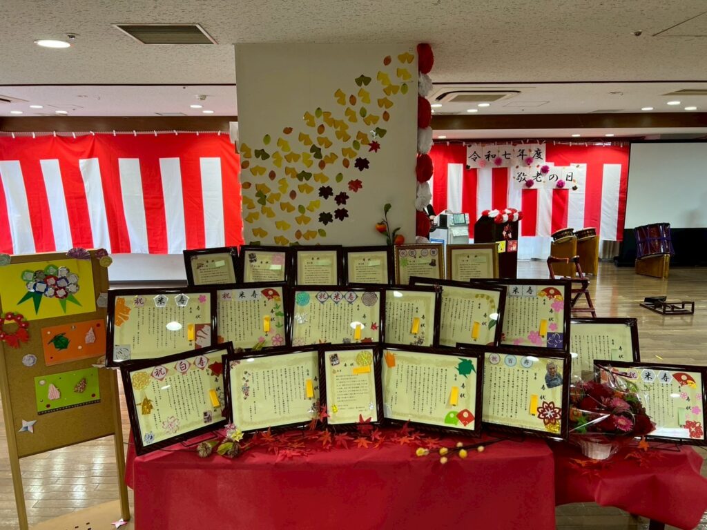 今年度の敬老会でのお祝い者は総勢19名、米寿や白寿、長寿など人生の大先輩への表彰式を行っています。
