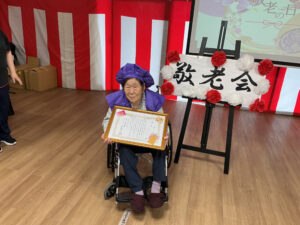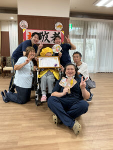みなさんこんにちは。癒しの里西亀有です。 8月14日に西亀有の施設で敬老会を開催いたしました。 今回のお祝い者はなんと・・26名の方がいらっしゃいました。 日頃からの感謝をお祝い者の方々へお伝えをし賞状をお渡ししました。 賞状を受け取られたファミリー皆さん喜んでおられました。また参加して下さったお祝い者のご家族様にも喜んでいただきました。 今後もお体に気をつけ末永くよろしくお願い致します。