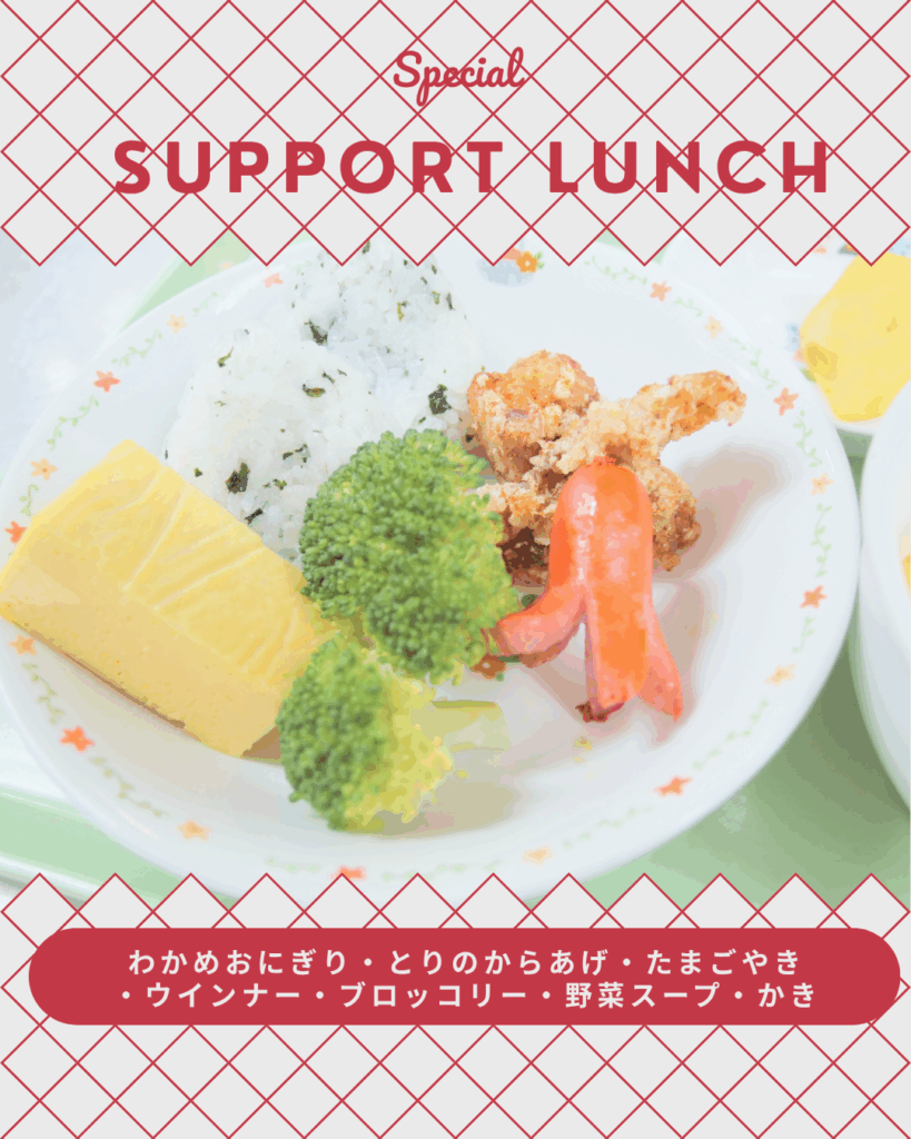 ・おにぎり、唐揚げ、タコさんウインナー、卵焼きなど、子どもたちが大好きなおかずをワンプレートにしました。特に唐揚げは大人気で、幼児クラスではおかわりの列が絶えない大盛況ぶりでした。